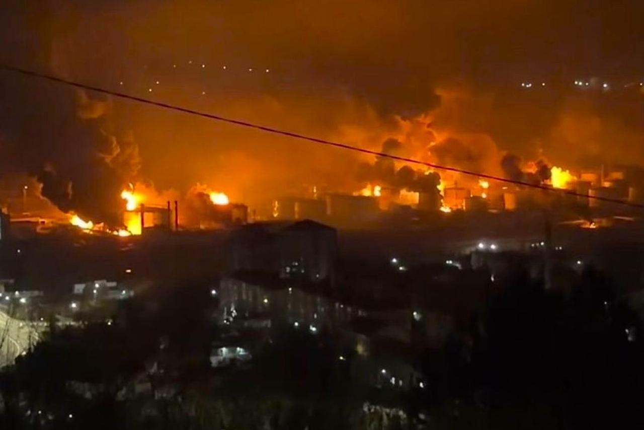 Удар пришелся по портовой части предприятия, где сосредоточены ключевые мощности хранения нефти и нефтепродуктов. Пожар охватил около десяти резервуаров, что указывает на значительный масштаб разрушений. Учитывая объем каждого резервуара, достигающий десятков тысяч кубометров, речь идет о серьезных потерях ресурсов и повреждении критической инфраструктуры.