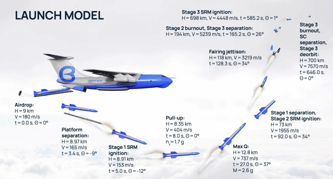 Технология воздушного старта, лежащая в основе Orbit Boy, позволяет запускать ракету с высоты нескольких километров, минуя плотные слои атмосферы. В ходе испытаний инженерная модель ракеты уже была успешно запущена с высоты около 5000 метров с борта Ан-70, что стало важным подтверждением работоспособности концепции.
