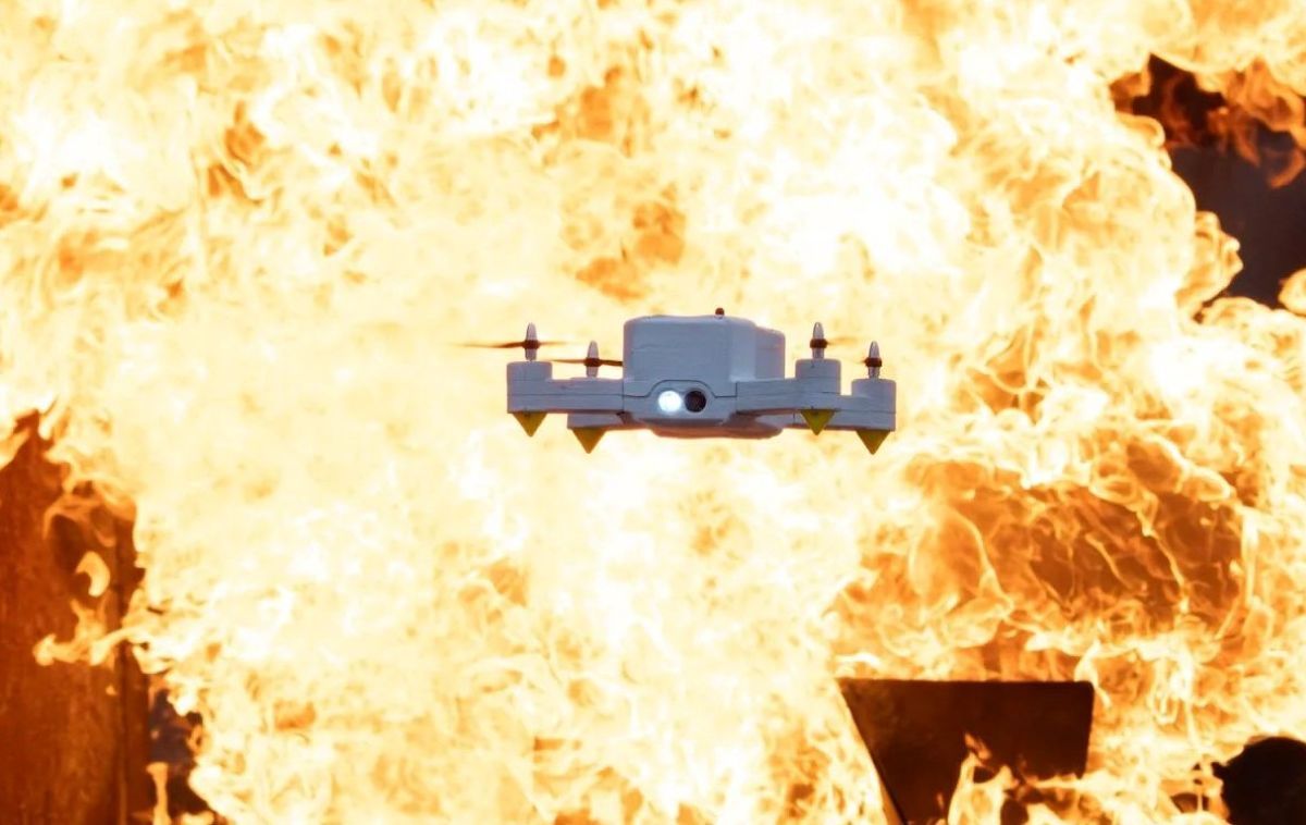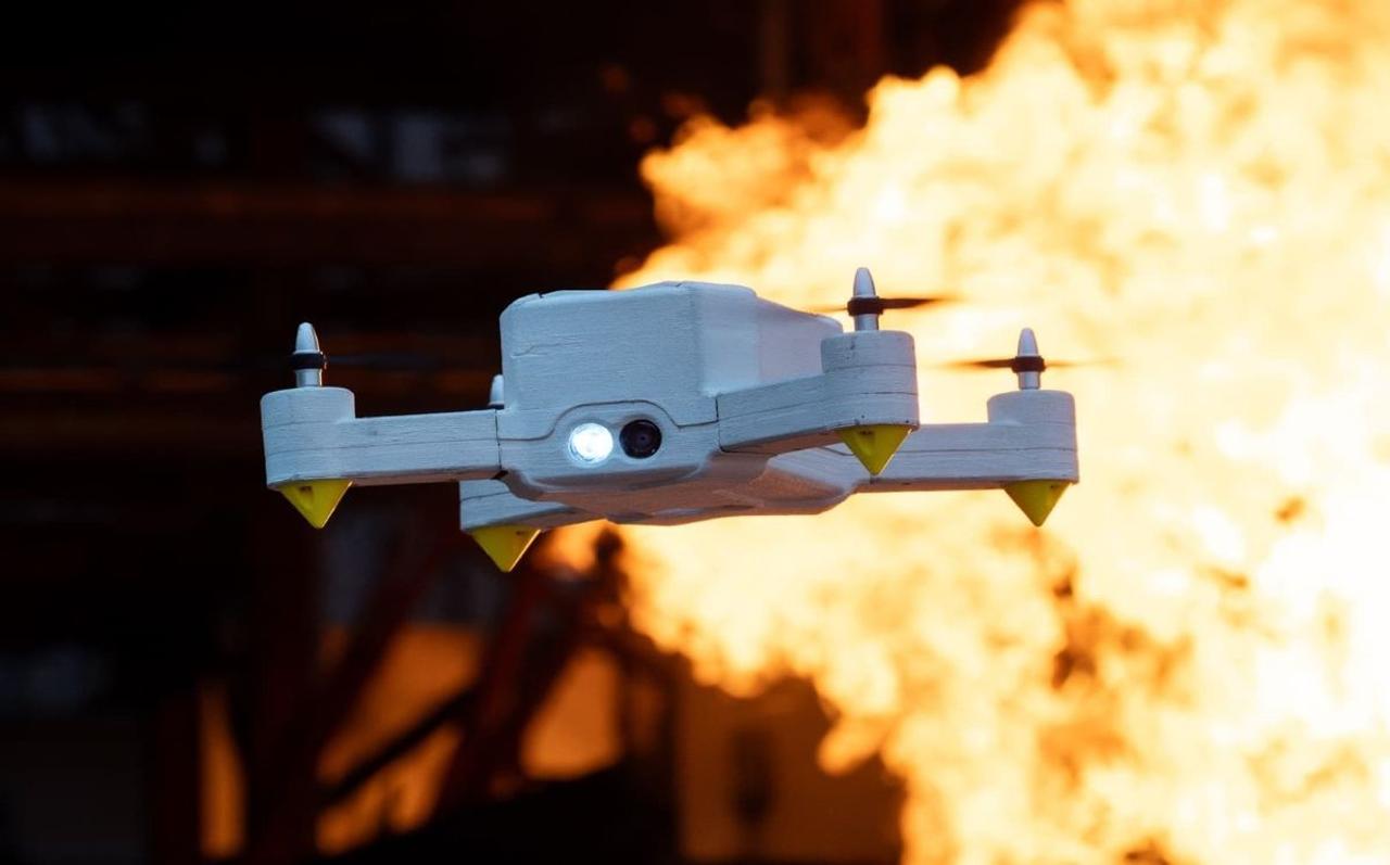 В Швейцарии разработали пожарный дрон FireDrone для полётов внутри горящих зданий при температуре до 200 °C